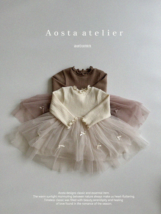 Camellia Ribbon Brown Tulle Dress | 2/3Y