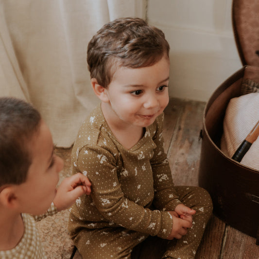 The Printed Short Sleeve Onesie - Dusty Mauve Floral