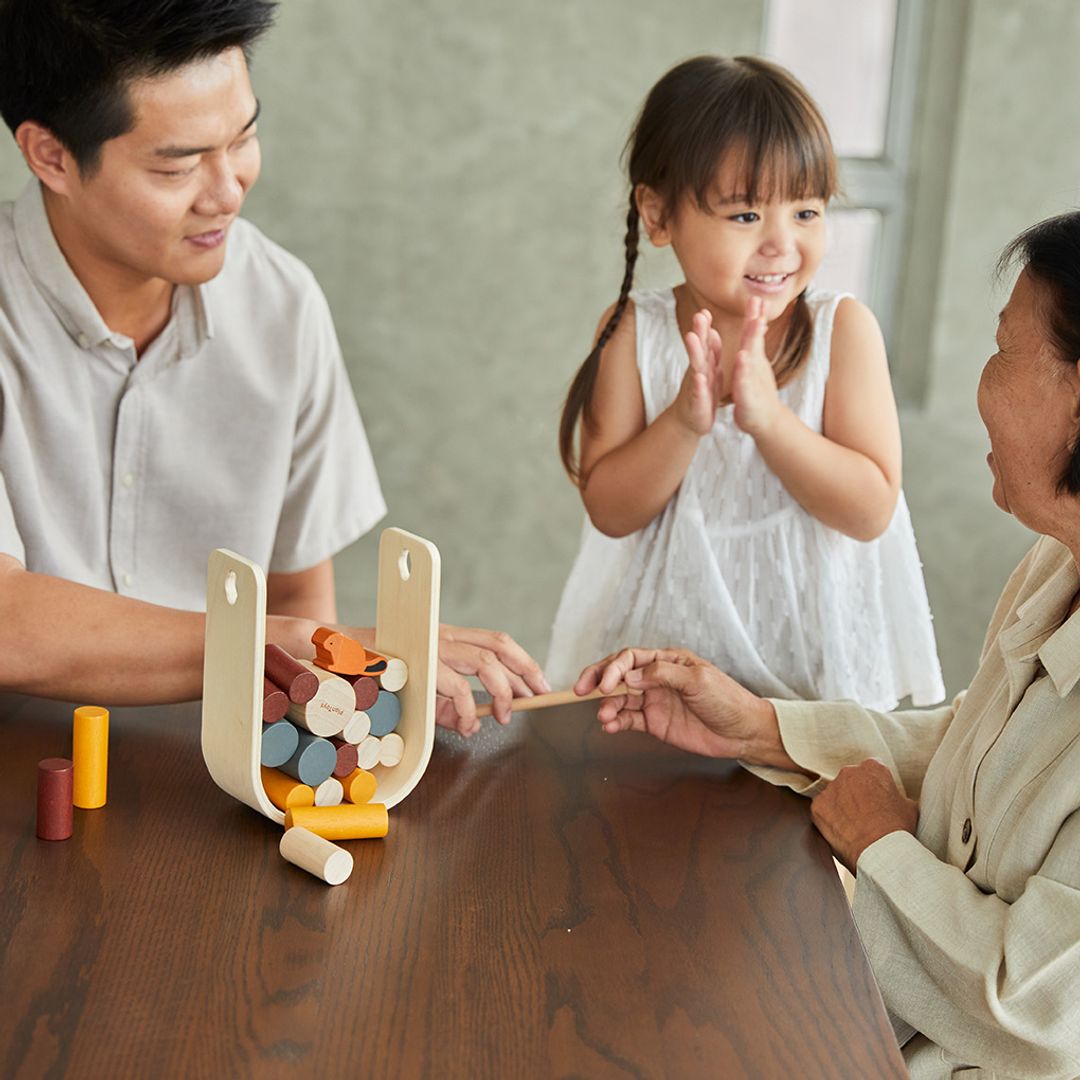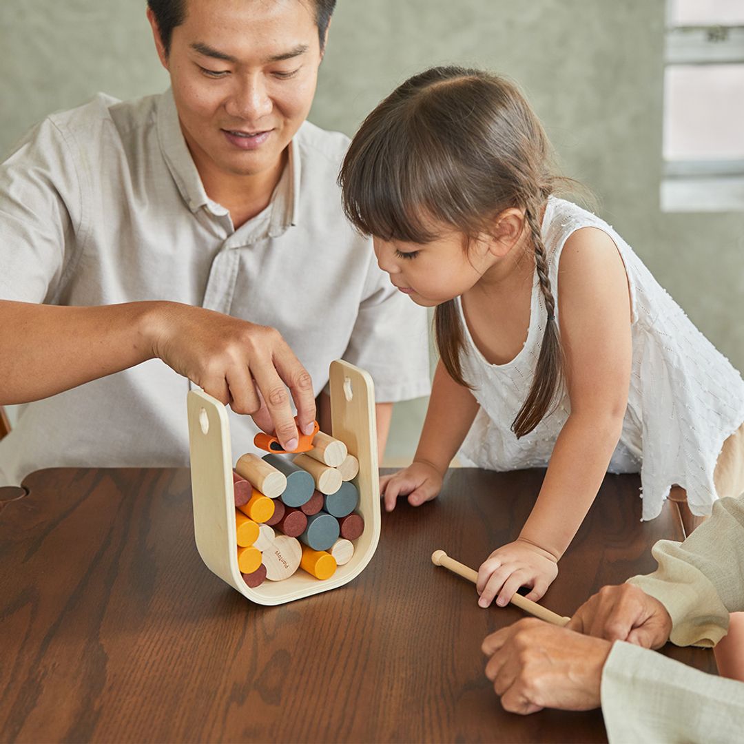 Sharpen strategic thinking skills and hand-eye coordination with the PlanToys Beaver Tumble! Using the included wooden stick, each player takes a turn pushing out a log while preventing the beaver from taking a tumble. The players who are successful in removing timber from the beaver nest without having the beaver tumble win the game! Beaver Tumble can be played individually or in groups.