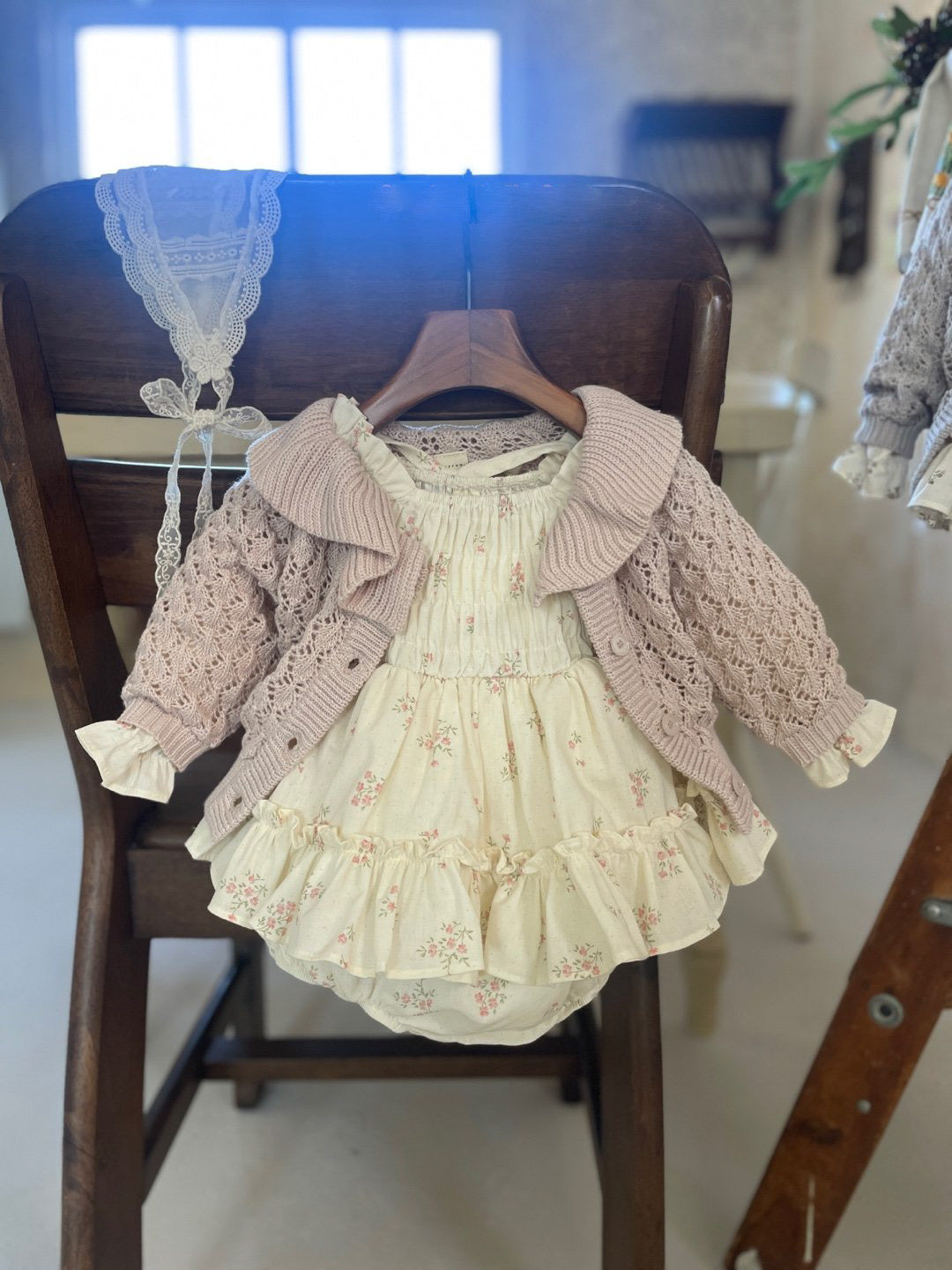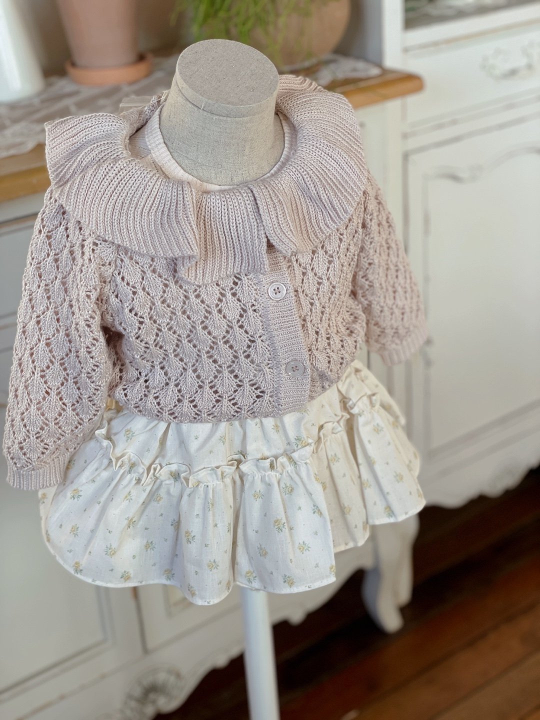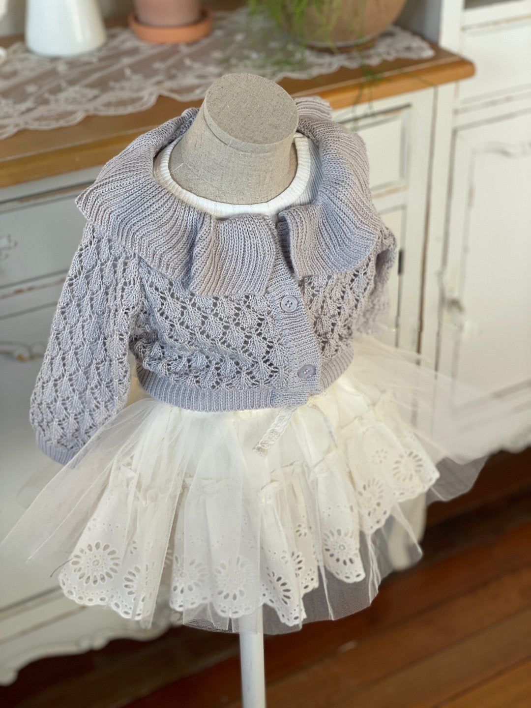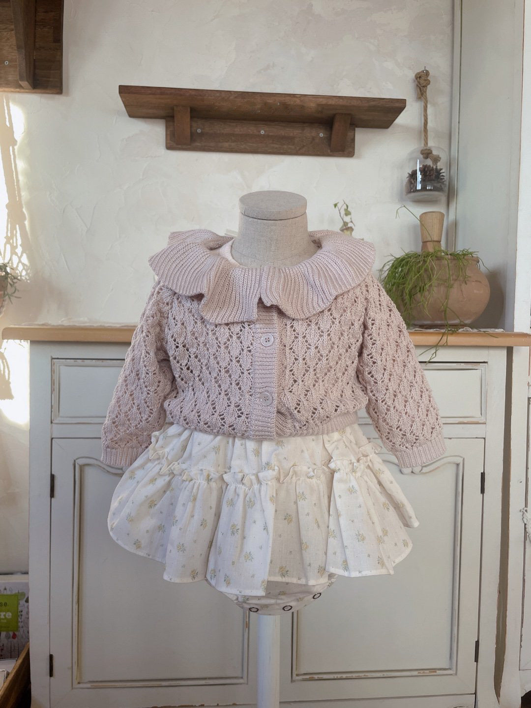 Perfect for layering. Knit cardigan with pastel color scheme to go with any piece of your choice.