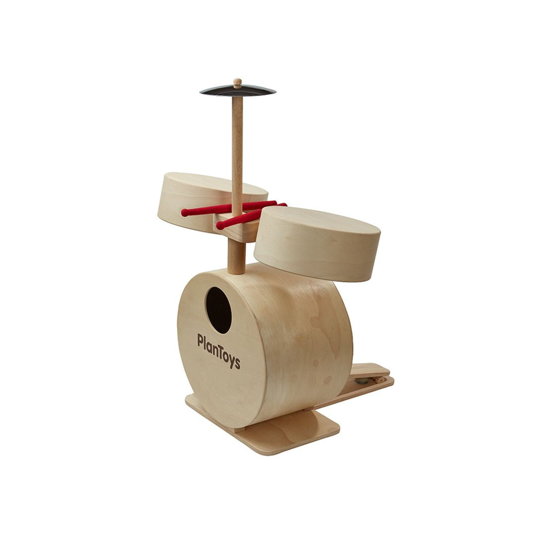 Join a rock band and take center stage with the PlanToys Drum Set! This musical playset is the first one in the world to be entirely made out of wood and comes with the ability to produce a variety of sounds and rhythms. Complete with a snare drum, tom drum, and bass drum with a kick pedal, cymbal, and pair of rubber drum sticks, children can strengthen their hand-eye coordination, motor skills, ability to concentrate, auditory acuity, and more.