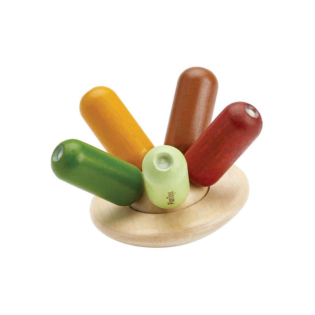 The PlanToys Flexi Jellyfish in the modern rustic colorway is a palm-clutching toy designed to fit in a child’s hand. The fun legs wiggle as they are pinched and pressed. It stimulates babies to practice grasping objects to develop capable palms and fingers. This toy will capture babies’ attention and provide a sensory and tactile experience.