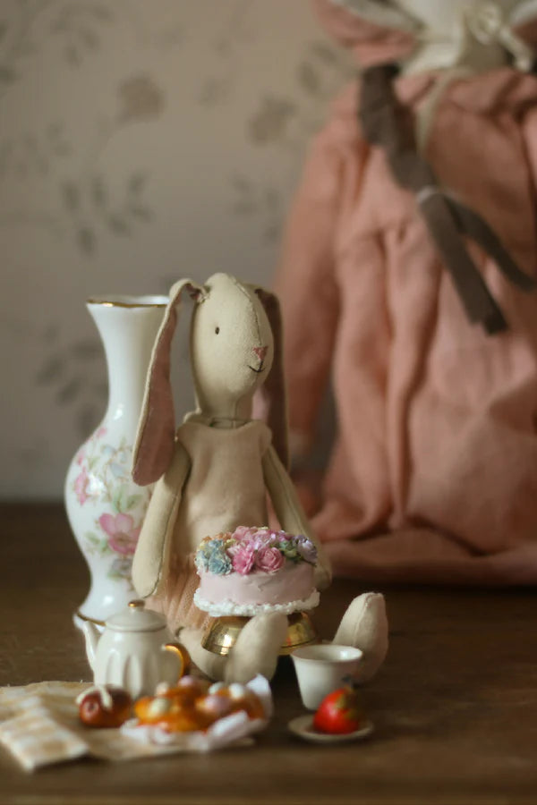It will come set on a scalloped paper doily. Please don't try to rip off the paper, it will spoil the cake. Please treat it as a collectible miniature and not a toy.