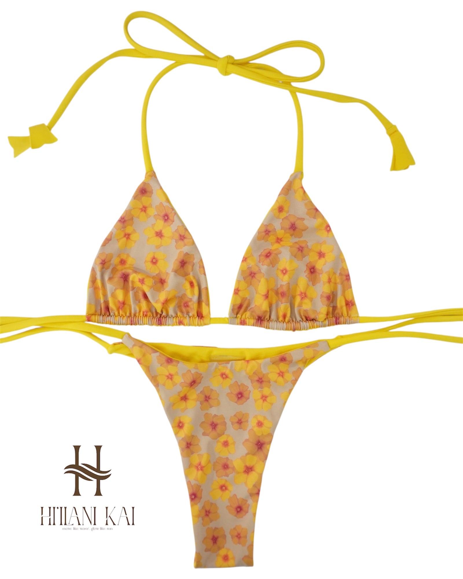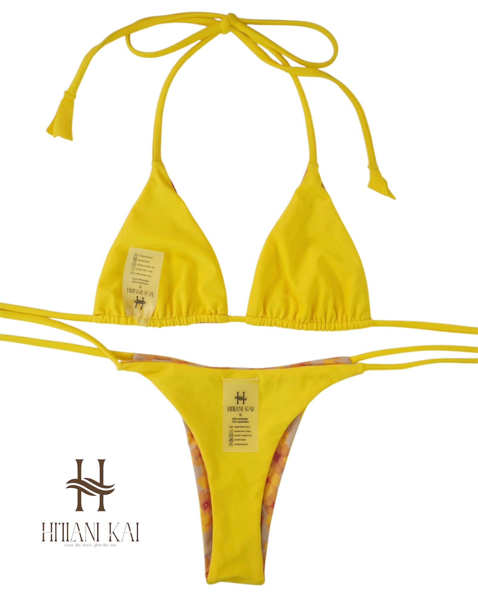 ‘Ilima Floral Print Reversible Bikini Triangle Set – Hi’ilani Kai