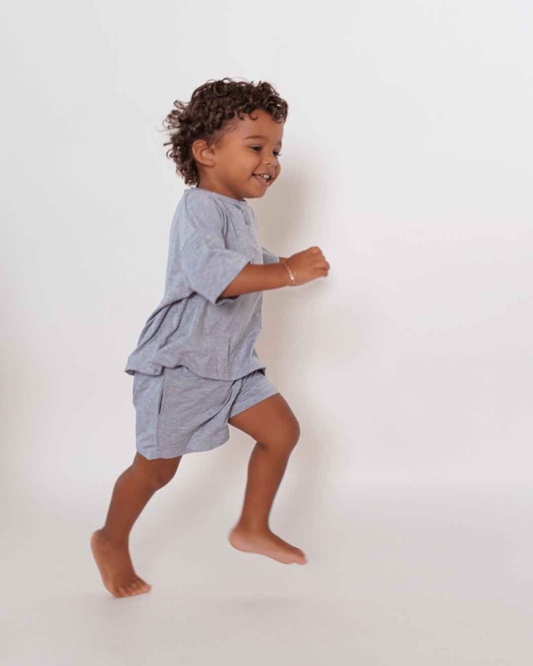 Our modal baby shorts in Heathered Grey are a warm-weather staple. Made from buttery-soft, breathable lenzing modal with a little stretch, they’re designed for all-day comfort. The versatile neutral shade makes mixing and matching simple for everyday play.
