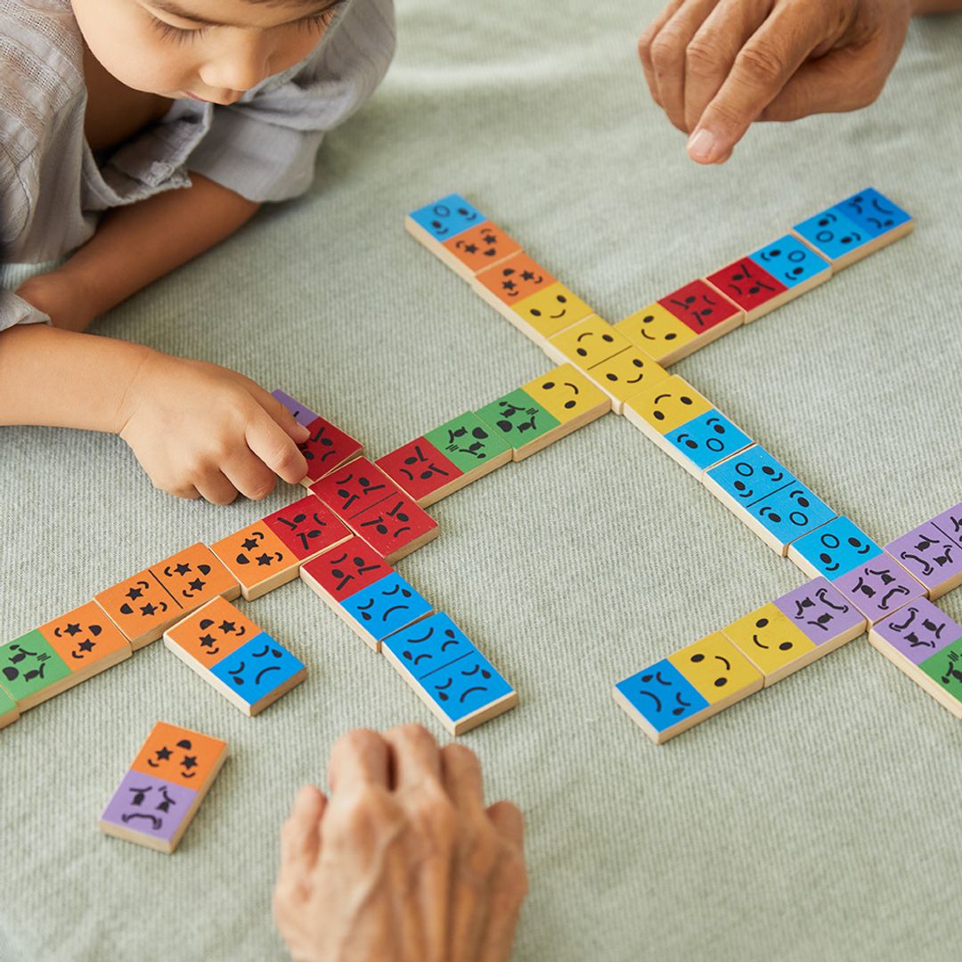 The PlanToys Mood Dominos is a game that helps you strengthen relationships with loved ones through storytelling. Players are instructed to match tiles based on facial expressions. After a tile is placed, the player proceeds to share a story that corresponds to the emotion on the tile. This set includes 28 wooden tiles with 7 different emotions and a cloth bag for storage and travel.