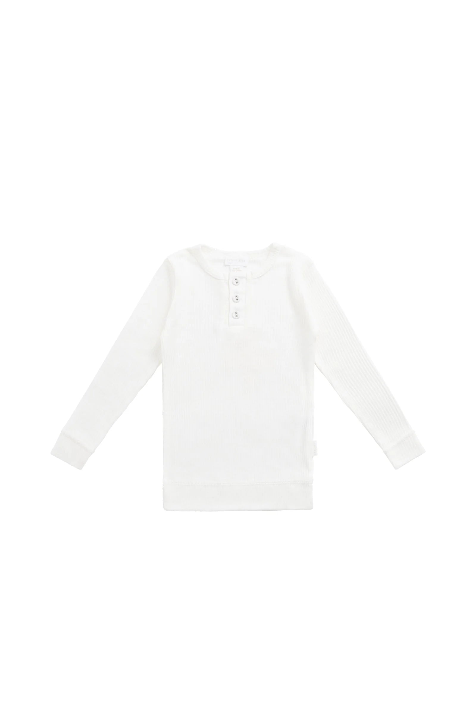 Organic Cotton Modal Long Sleeve Henley - Milk