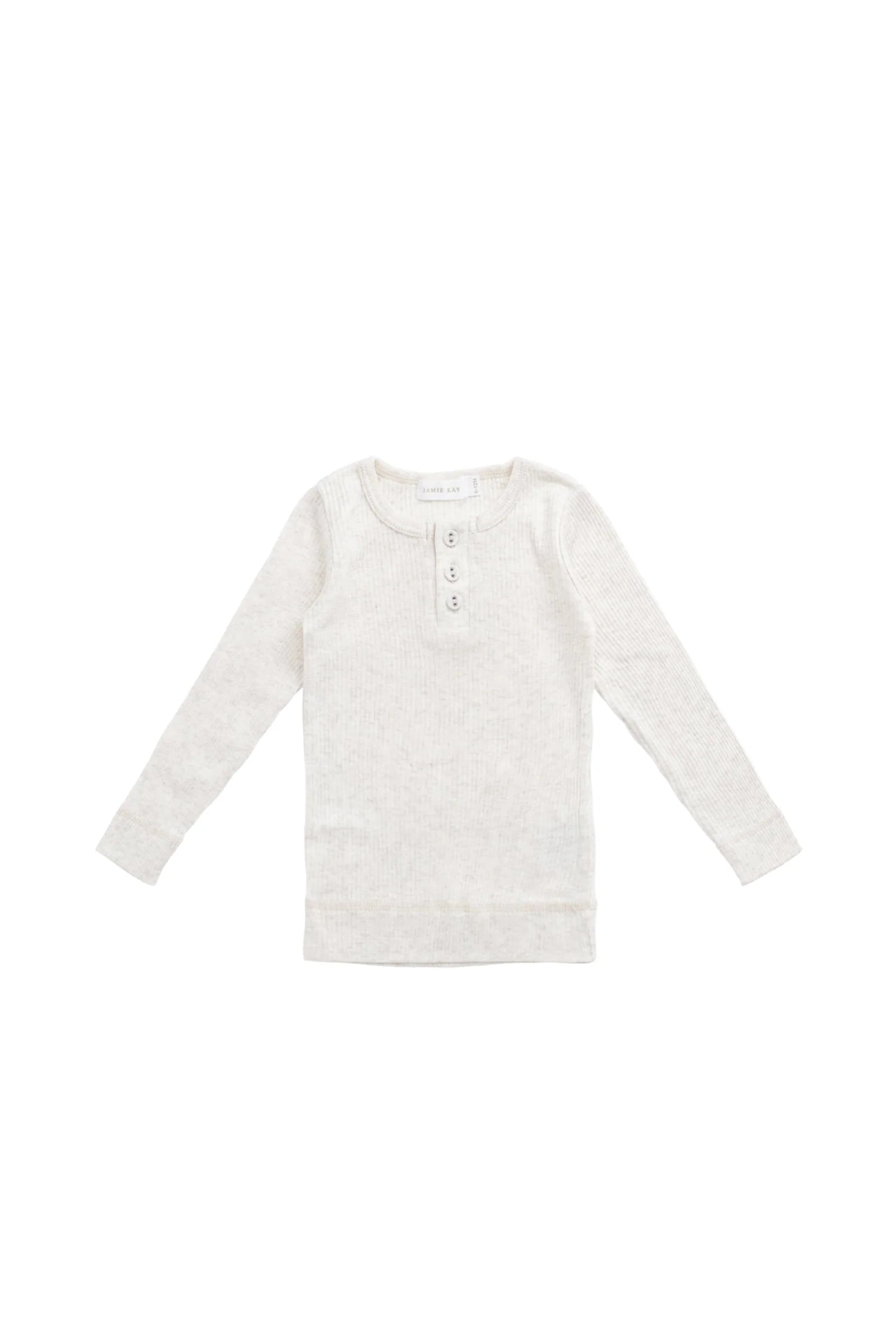 Organic Cotton Modal Long Sleeve Henley - Oatmeal Marle