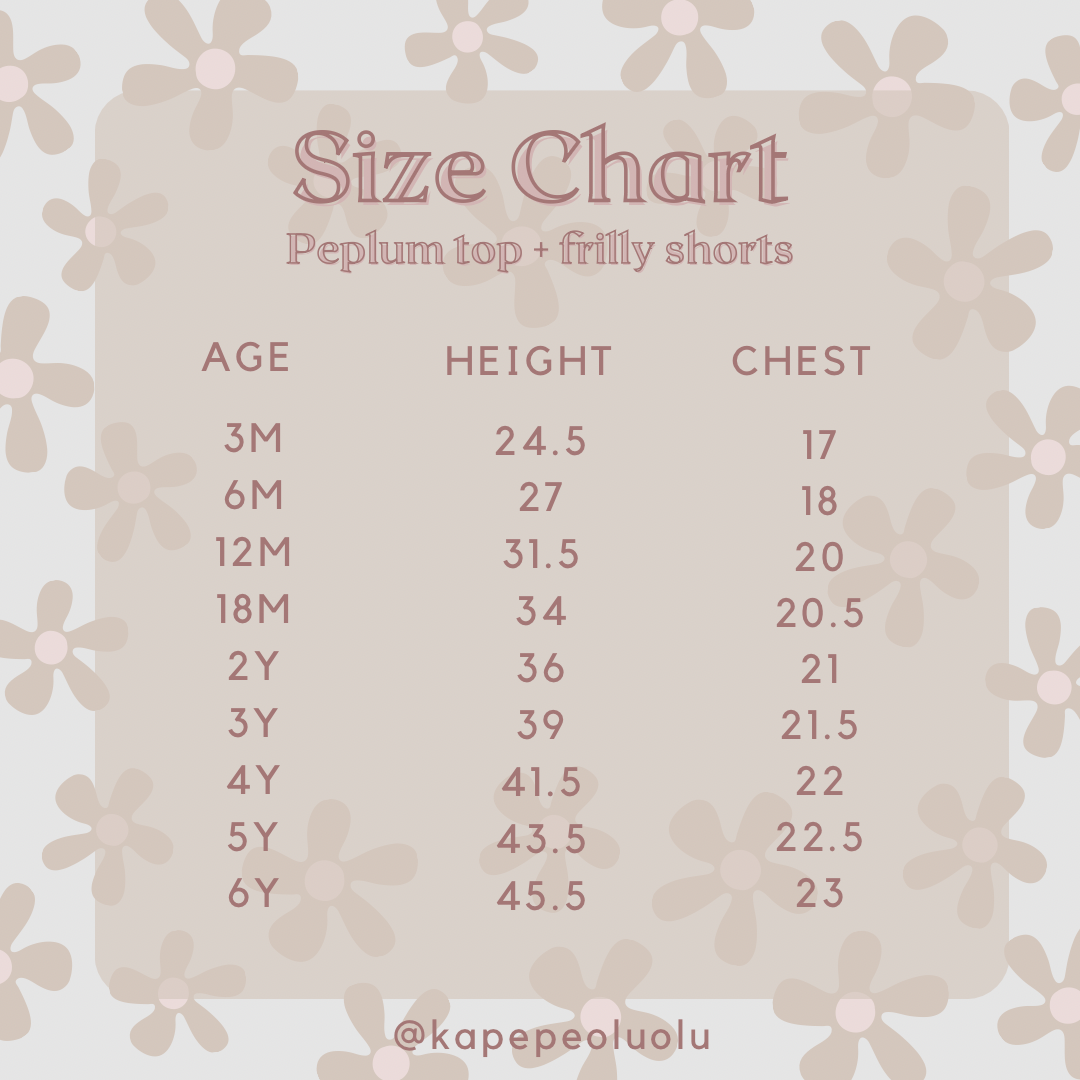 Bring a touch of Hawaiian charm to your little one’s wardrobe with this adorable handmade clothing set! Featuring a stylish peplum top paired with frilly shorts, this set is as comfortable as it is cute.