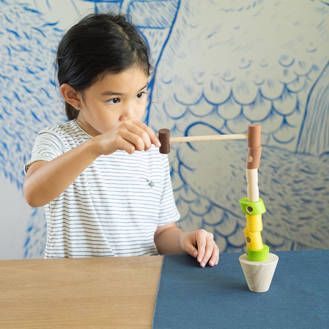 - strategically stack logs and develop fine motor skills all at the same time.