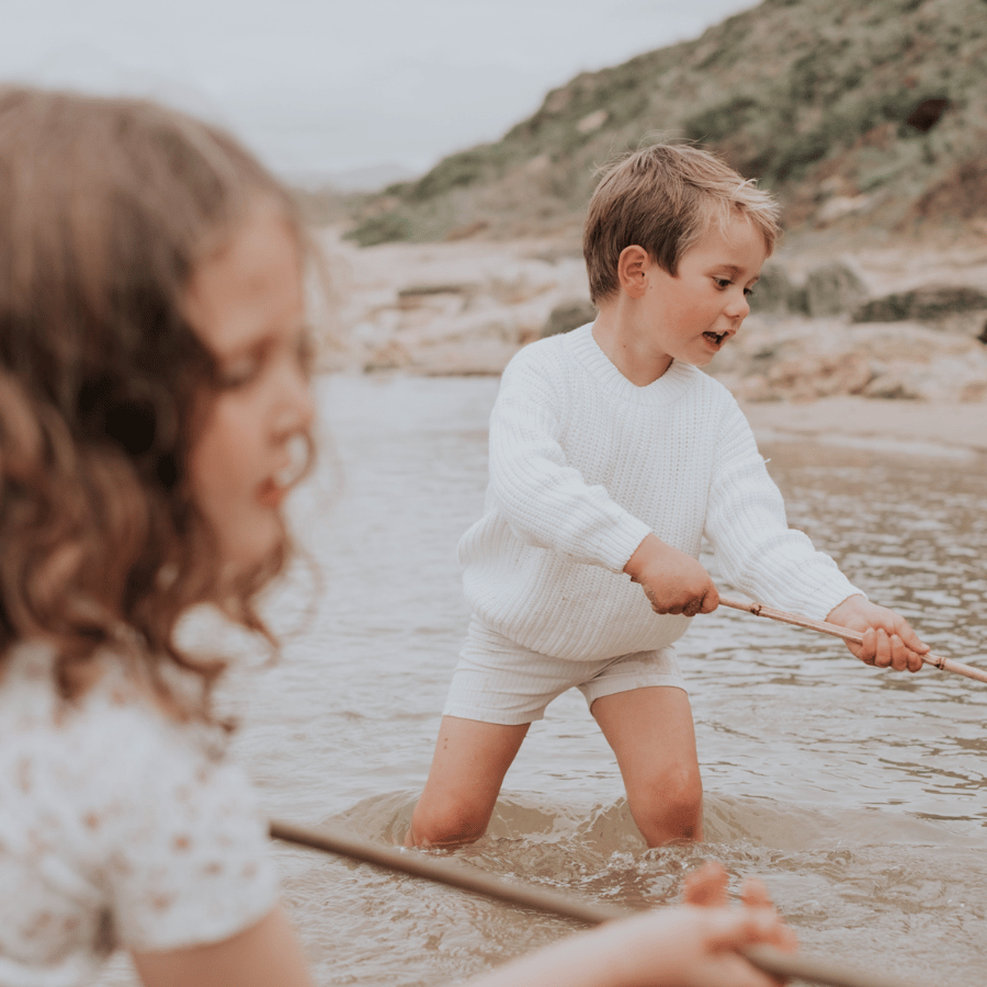 With a relaxed fit, our loose-knit sweater made from 100% cotton is the cool weather essential that dreams are made of. Pair it with coordinating leggings or a knitted bloomer.