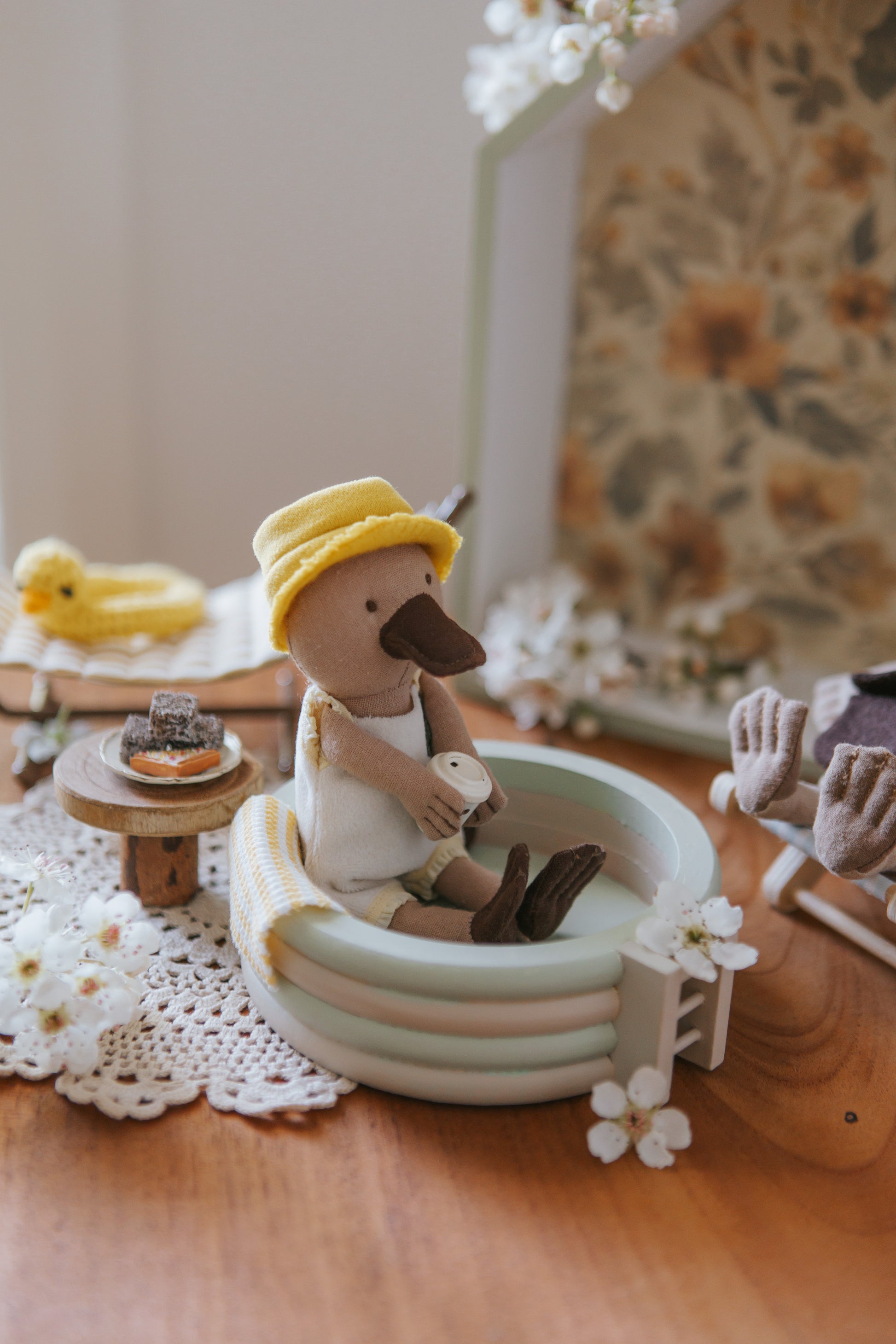 Magnets in hands. Say g’day to Puddles, the Creek Scout! With her soft toweling suit and favorite bucket hat, Puddles loves floating in the billabong and whispering to tadpoles. She keeps watch over her little patch of the wild, always spotting ripples and pebbles that others miss.