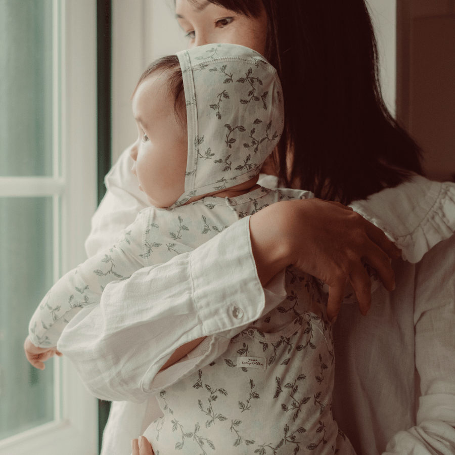 Cover and protect your little baby with this sweet bonnet. Pair it with a matching romper to complete the look.