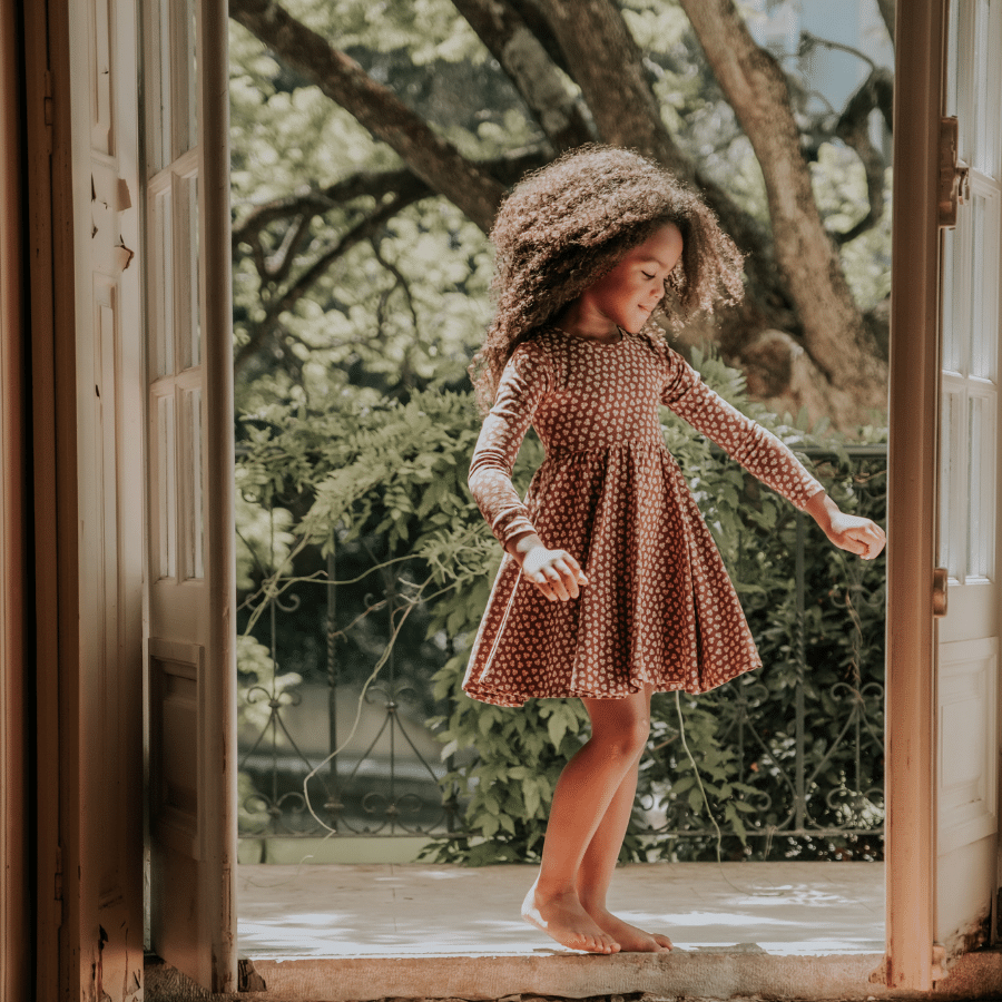 A twirly dress in the comfiest of fabrics - there is no better combination! This dress will quickly become her favorite!