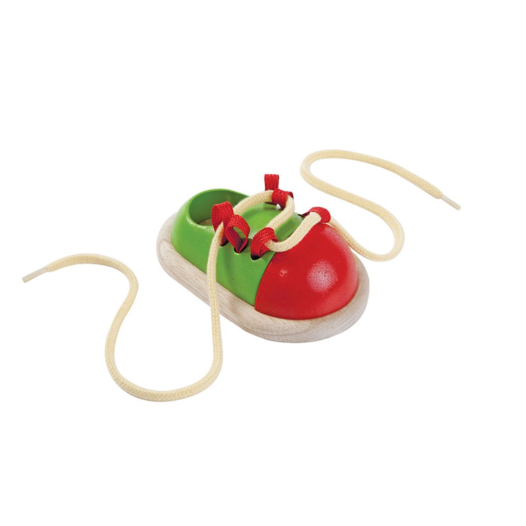 Learn how to tie your shoes! The laces on this wooden shoe can help little ones develop their hand-eye coordination and fine motor skills so they can tie their shoes on their own one day.