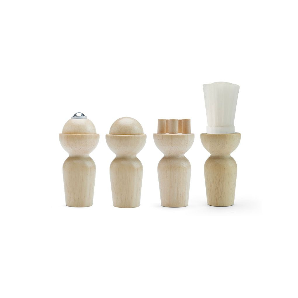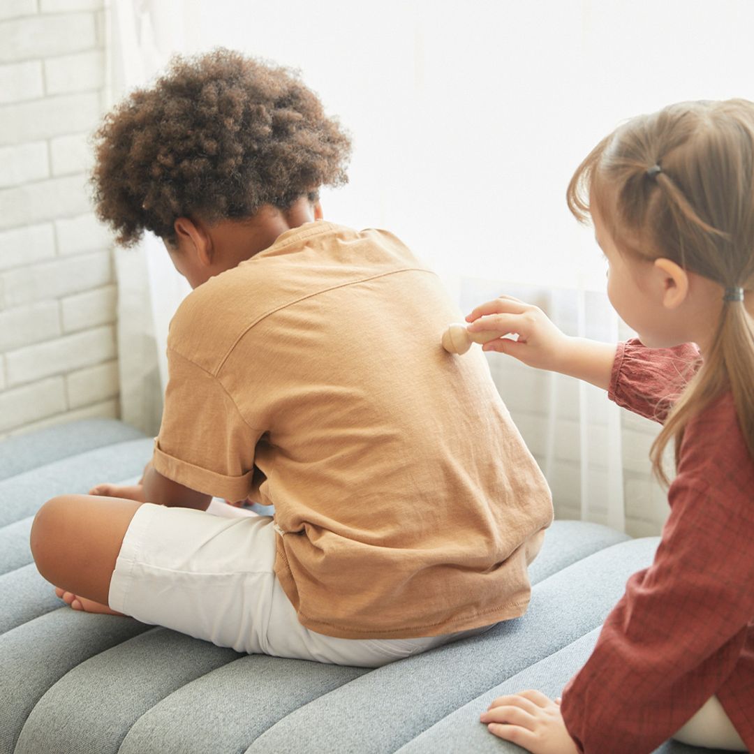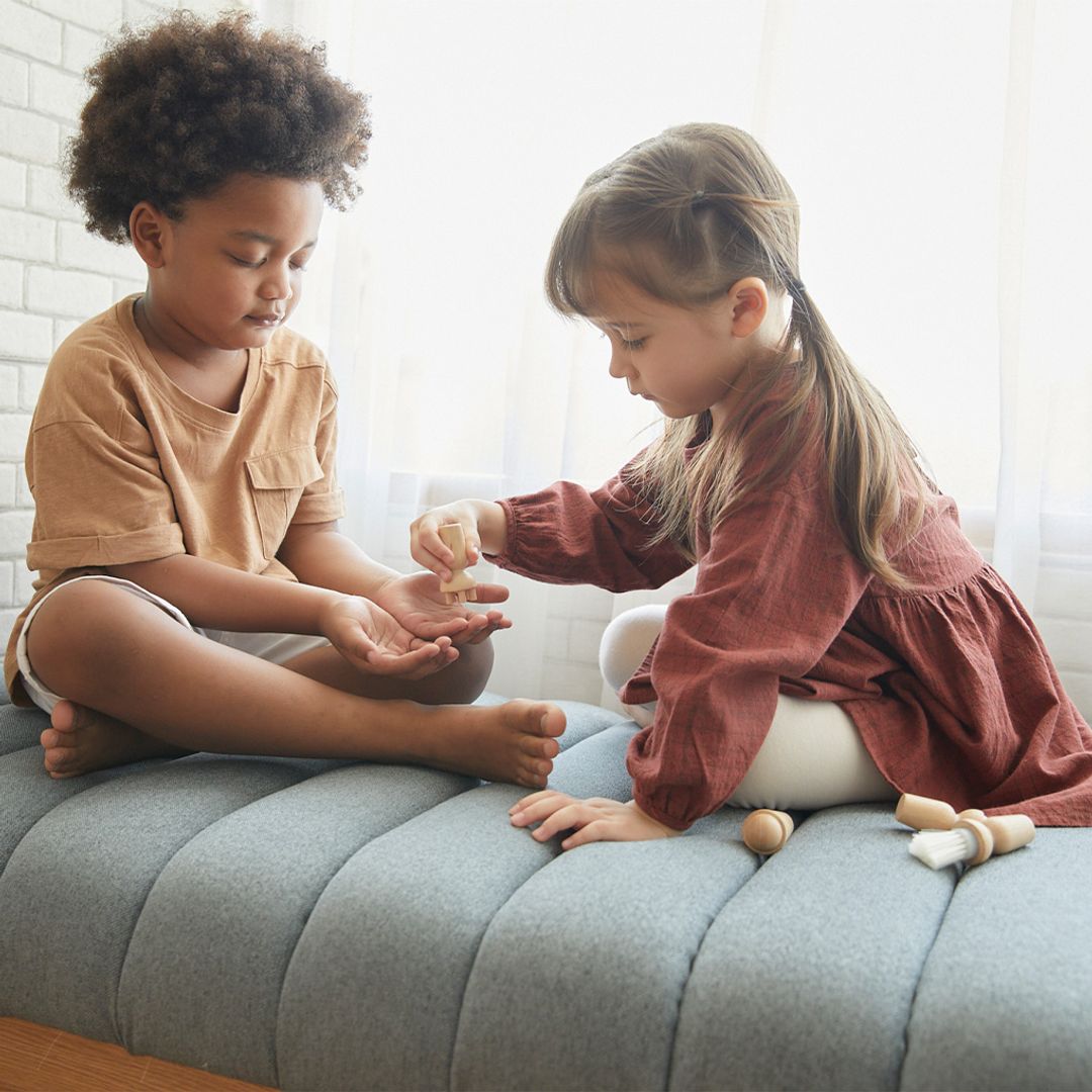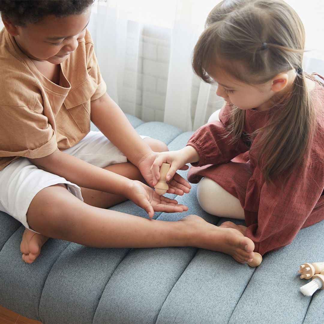 You don't need digital devices to explore foundational skills! The Touch & Guess playset helps bring children back to center with physical contact and interactive play. Complete with 4 wooden textured rollers, kids are invited to explore the different sensations that each one provides! Draw on a companion's back and have them try to guess which roller you're using or incorporate the rollers into other pretend-play scenarios of your choosing for added dynamic.